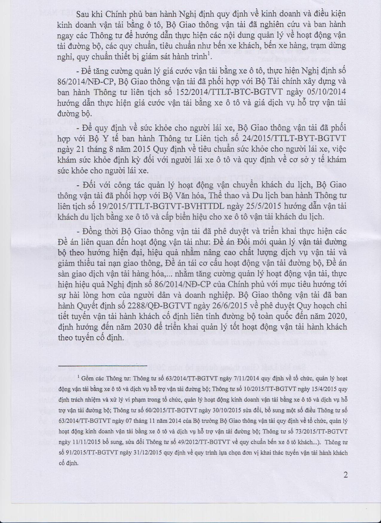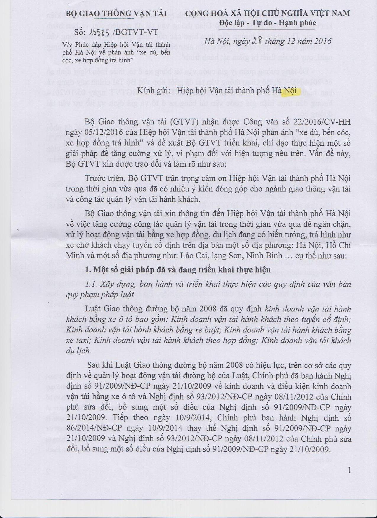 BỘ GTVT TRẢ LỜI KIẾN NGHỊ CỦA HIỆP HỘI VẬN TẢI HÀ NỘI VỀ QUẢN LÝ XE TUYẾN CỐ ĐỊNH TRÊN CÁC ĐƯỜNG CAO TỐC