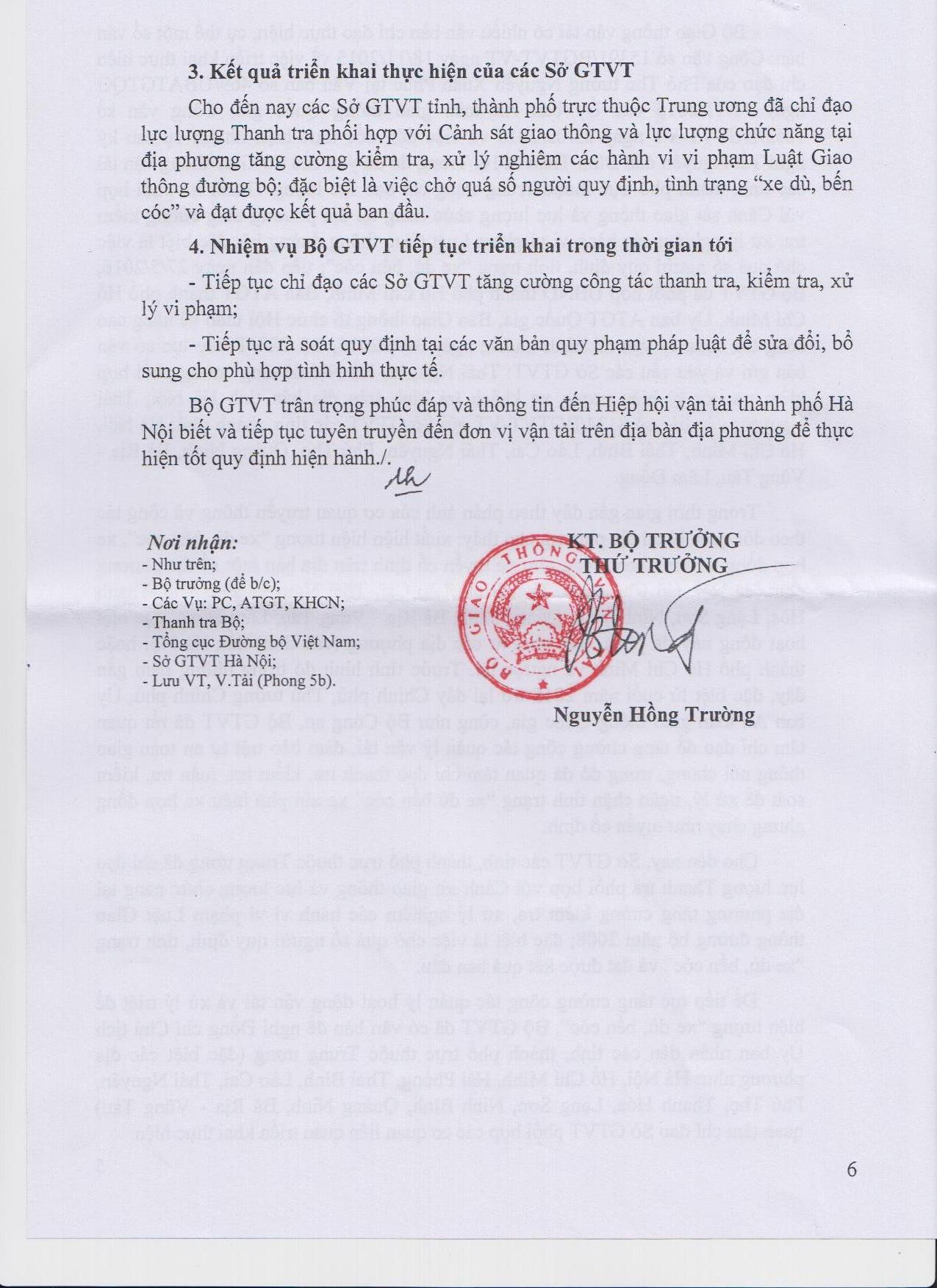 BỘ GTVT TRẢ LỜI KIẾN NGHỊ CỦA HIỆP HỘI VẬN TẢI TP. HÀ NỘI