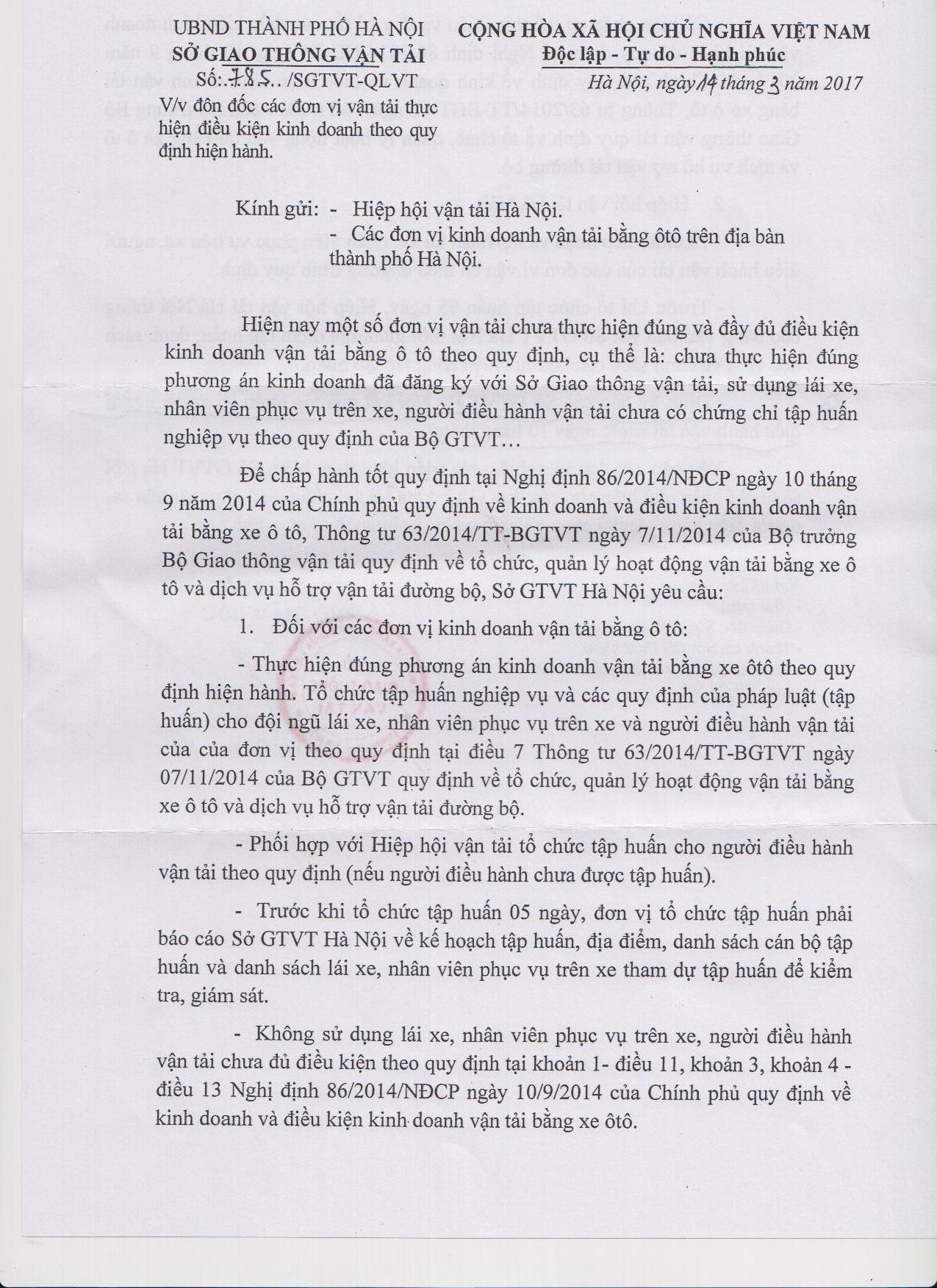 CÔNG VĂN KIẾN NGHỊ LẬP LẠI KỶ CƯƠNG QUẢN LÝ PHƯƠNG TIỆN VẬN TẢI ĐƯỜNG BỘ VÀ BẾN XE KHÁCH