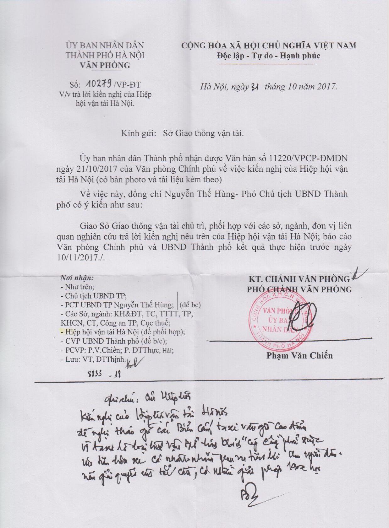 UBND TP. Hà Nội trả lời kiến nghị của Hiệp hội Vận tải TP. Hà Nội.