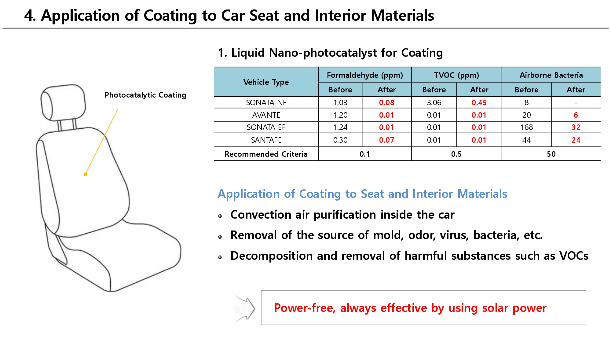 Công ty Bentech Frontier Hàn Quốc (https://www.btfgreen.com/) chuyên sản xuất Dung dịch vệ sinh làm sạch nội thất ô tô và máy lọc không khí. Đặc biệt, sản phẩm dung dịch vệ sinh nội thất ô tô của Bentech Frontier có chứa thành phần Titanium Dioxide - một loại khoáng chất tự nhiên cùng với Công nghệ riêng biệt của Công ty giúp các sản phẩm của Bentech không gây hại cho cơ thể con người, có hiệu quả và độ bền cao trong việc loại bỏ các chất độc hại. Với mong muốn đưa sản phẩm có chất lượng tốt tới thị trường Việt Nam trong tương lai, hiện nay công ty rất mong muốn được kết nối trao đổi với các đơn vị có nhu cầu.