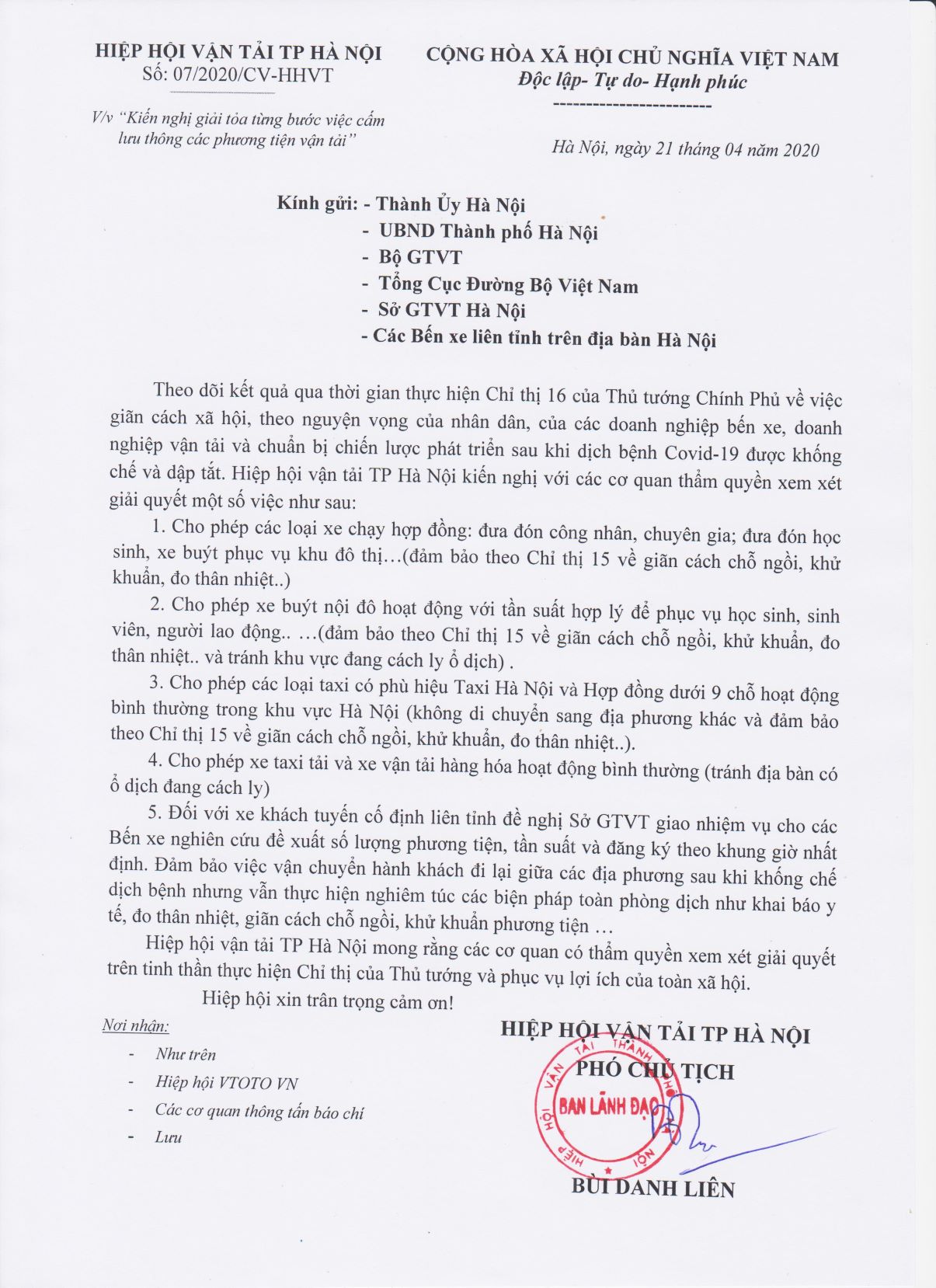 CÔNG VĂN KIẾN NGHỊ GIẢI TỎA TỪNG BƯỚC VIỆC CẤM LƯU THÔNG CÁC PHƯƠNG TIỆN VẬN TẢI