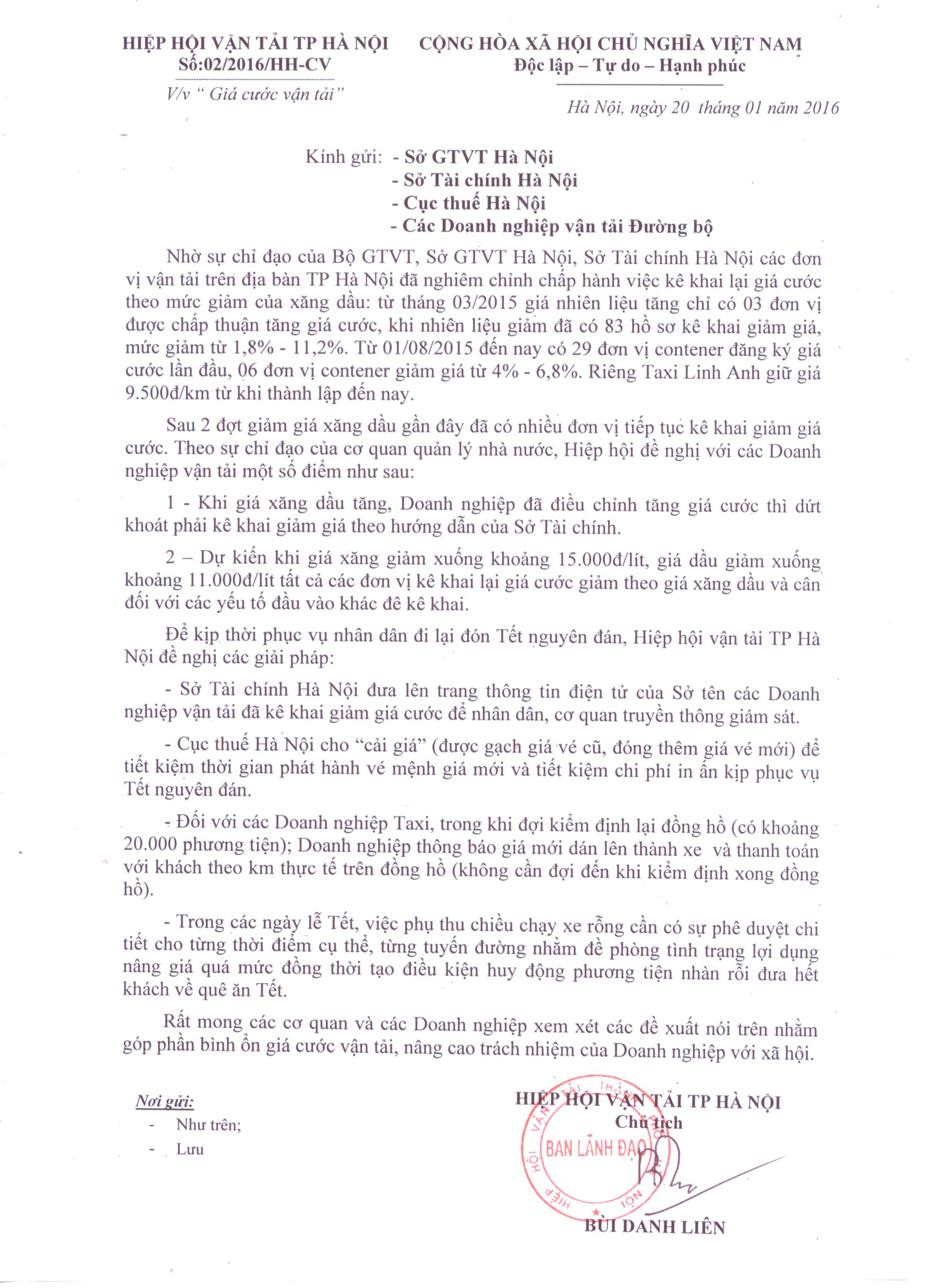 Ý KIẾN CHỈ ĐẠO CỦA HIỆP HỘI VẬN TẢI TP HÀ NỘI VỀ GIẢM GIÁ CƯỚC ...