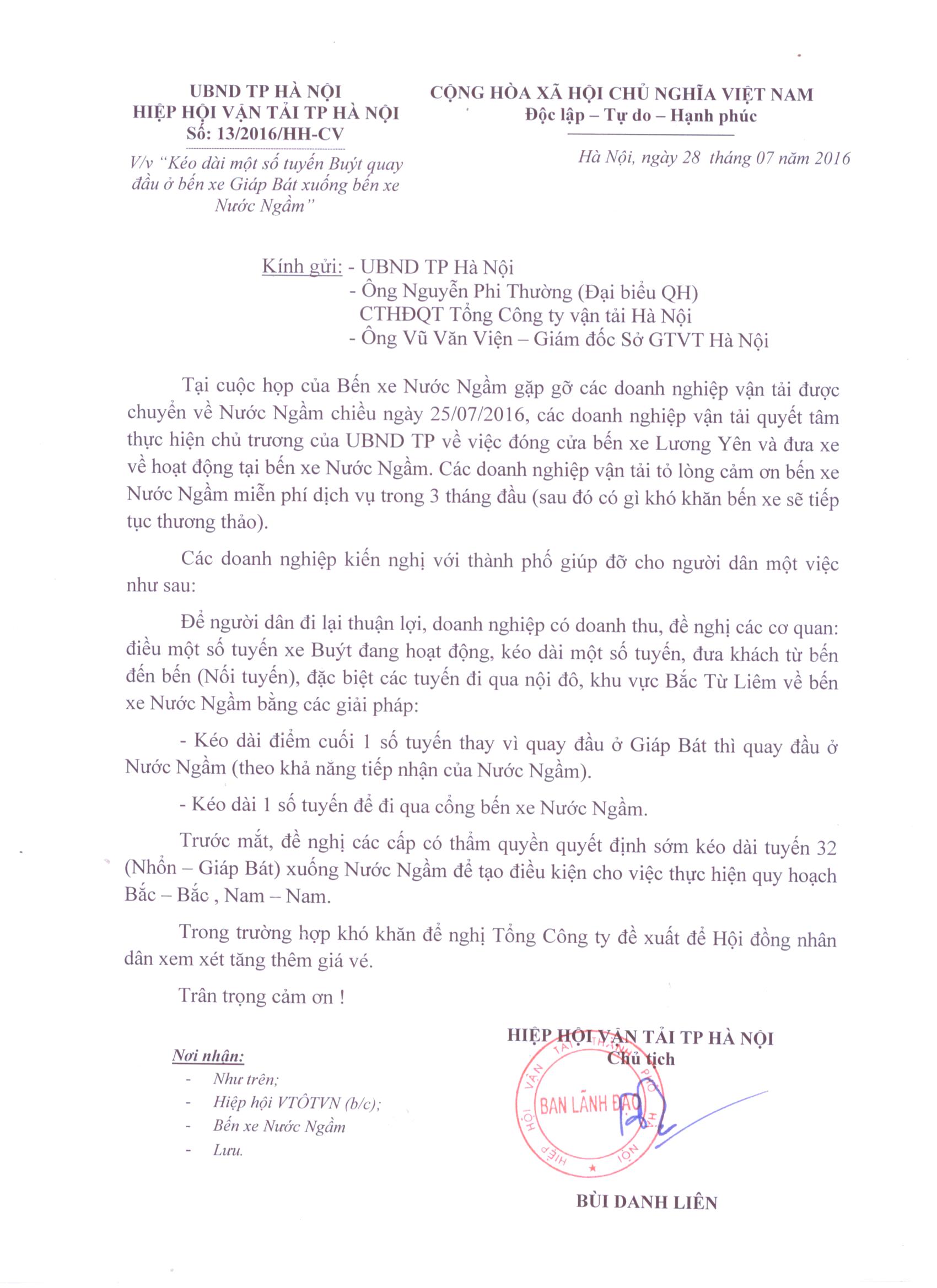 HIỆP HỘI VẬN TẢI TP HÀ NỘI KIẾN NGHỊ SỞ GTVT CHO PHỤC HỒI HOẠT ĐỘNG CỦA NHÀ XE SAO VIỆT