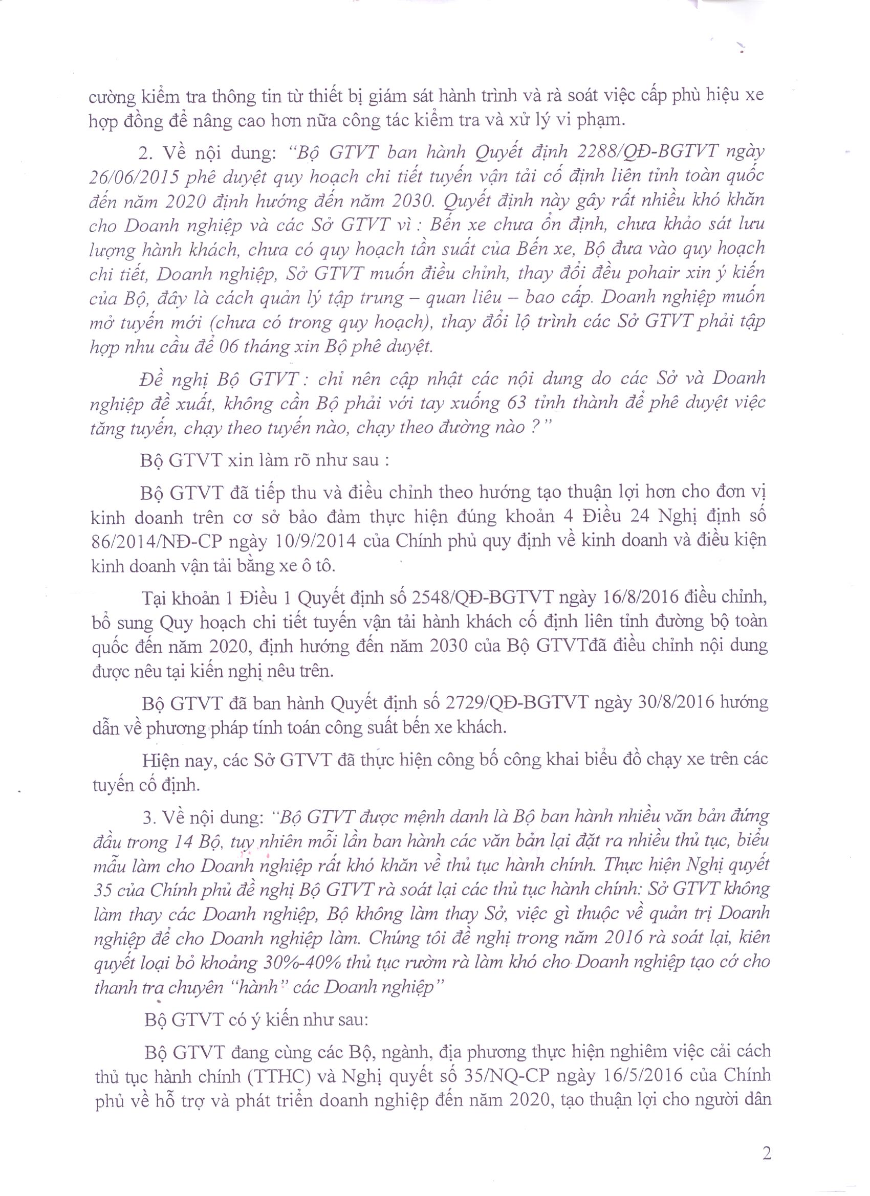 VĂN PHÒNG CHÍNH PHỦ TRẢ LỜI KIẾN NGHỊ CỦA HIỆP HỘI VẬN TẢI TP HÀ NỘI