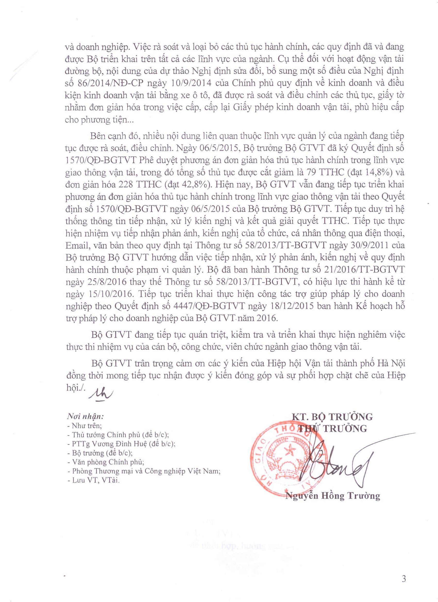 BỘ GTVT TRẢ LỜI KIẾN NGHỊ CỦA HIỆP HỘI VẬN TẢI TP HÀ NỘI
