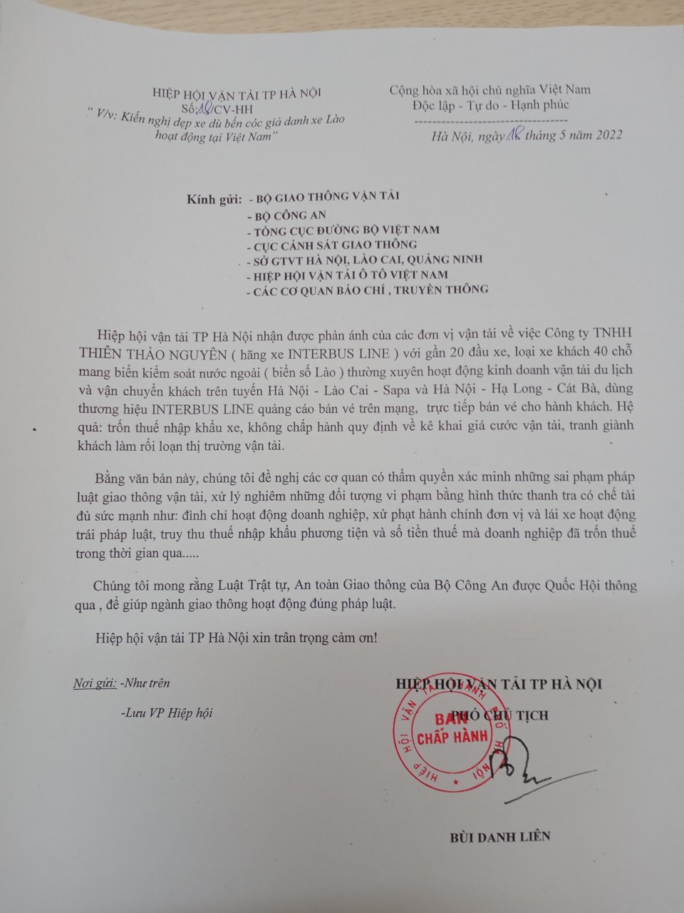 CÔNG VĂN KIẾN NGHỊ LẬP LẠI KỶ CƯƠNG QUẢN LÝ PHƯƠNG TIỆN VẬN TẢI ĐƯỜNG BỘ VÀ BẾN XE KHÁCH