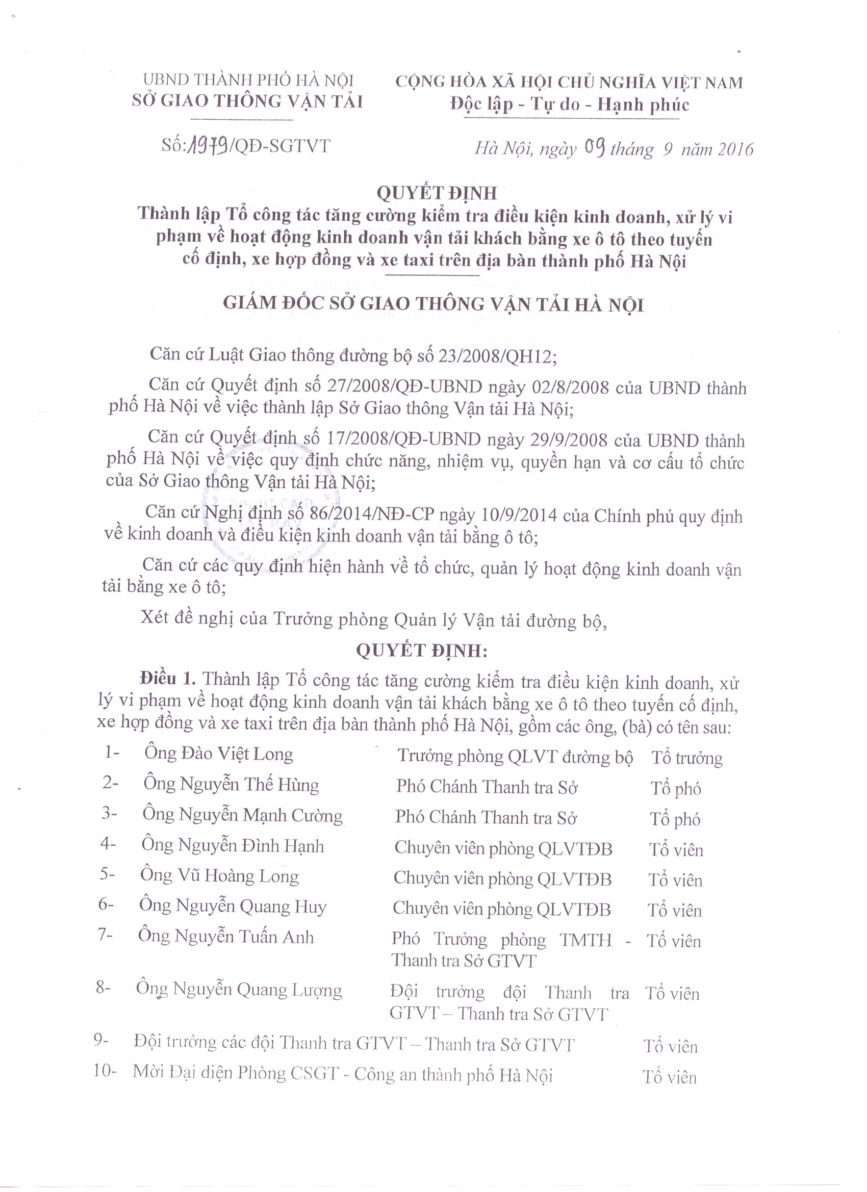 CÔNG VĂN KIẾN NGHỊ LẬP LẠI KỶ CƯƠNG QUẢN LÝ PHƯƠNG TIỆN VẬN TẢI ĐƯỜNG BỘ VÀ BẾN XE KHÁCH