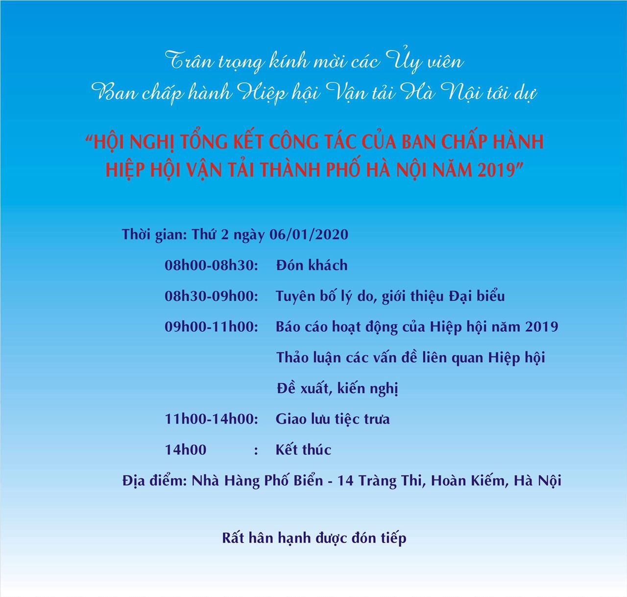 GIẤY MỜI HỌP HỘI NGHỊ TỔNG KẾT NĂM 2019 BCH HIỆP HỘI VẬN TẢI TP HÀ NỘI