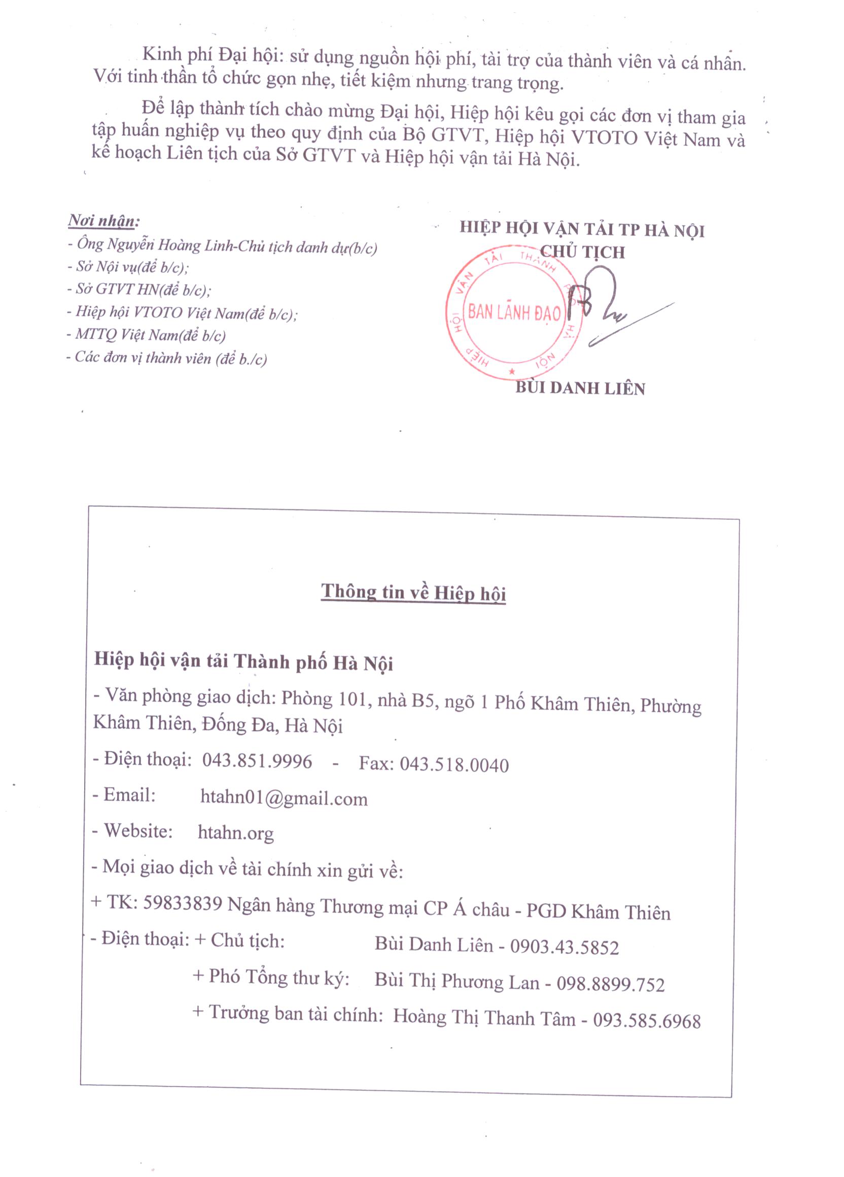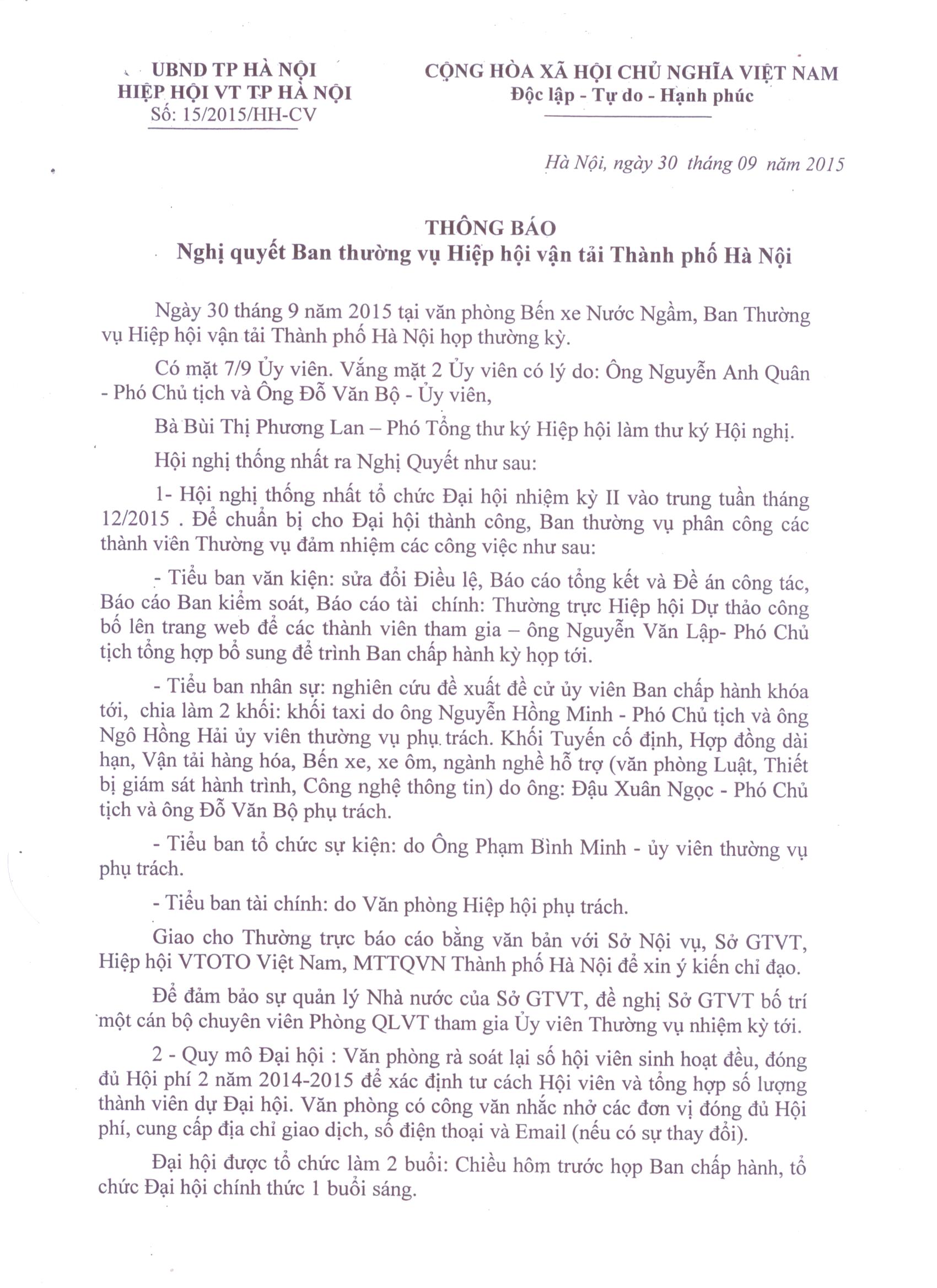 THÔNG BÁO HỌP THƯỜNG VỤ HIỆP HỘI VẬN TẢI TP HÀ NỘI