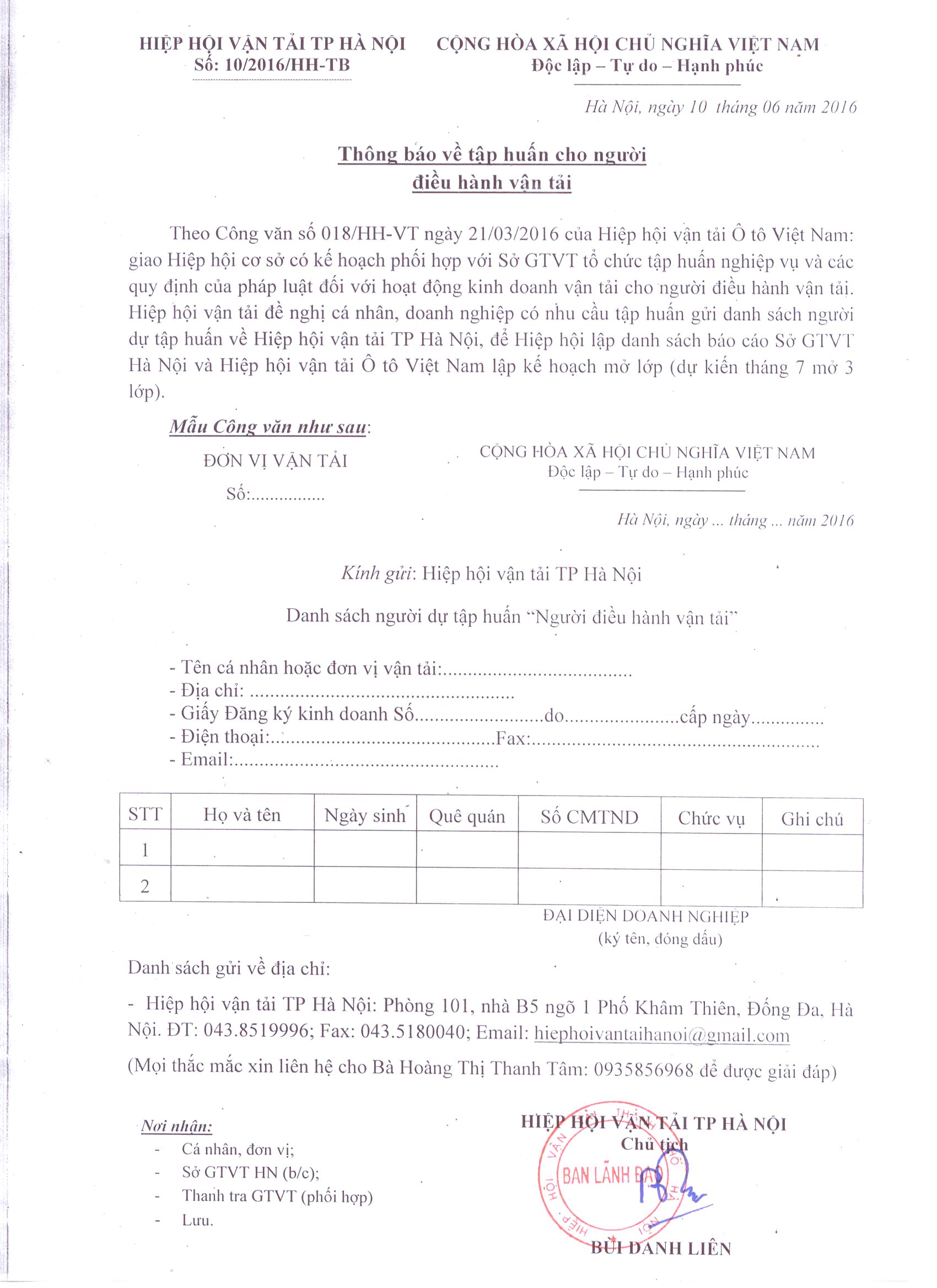 THÔNG BÁO VỀ TẬP HUẤN CHO NGƯỜI ĐIỀU HÀNH VẬN TẢI