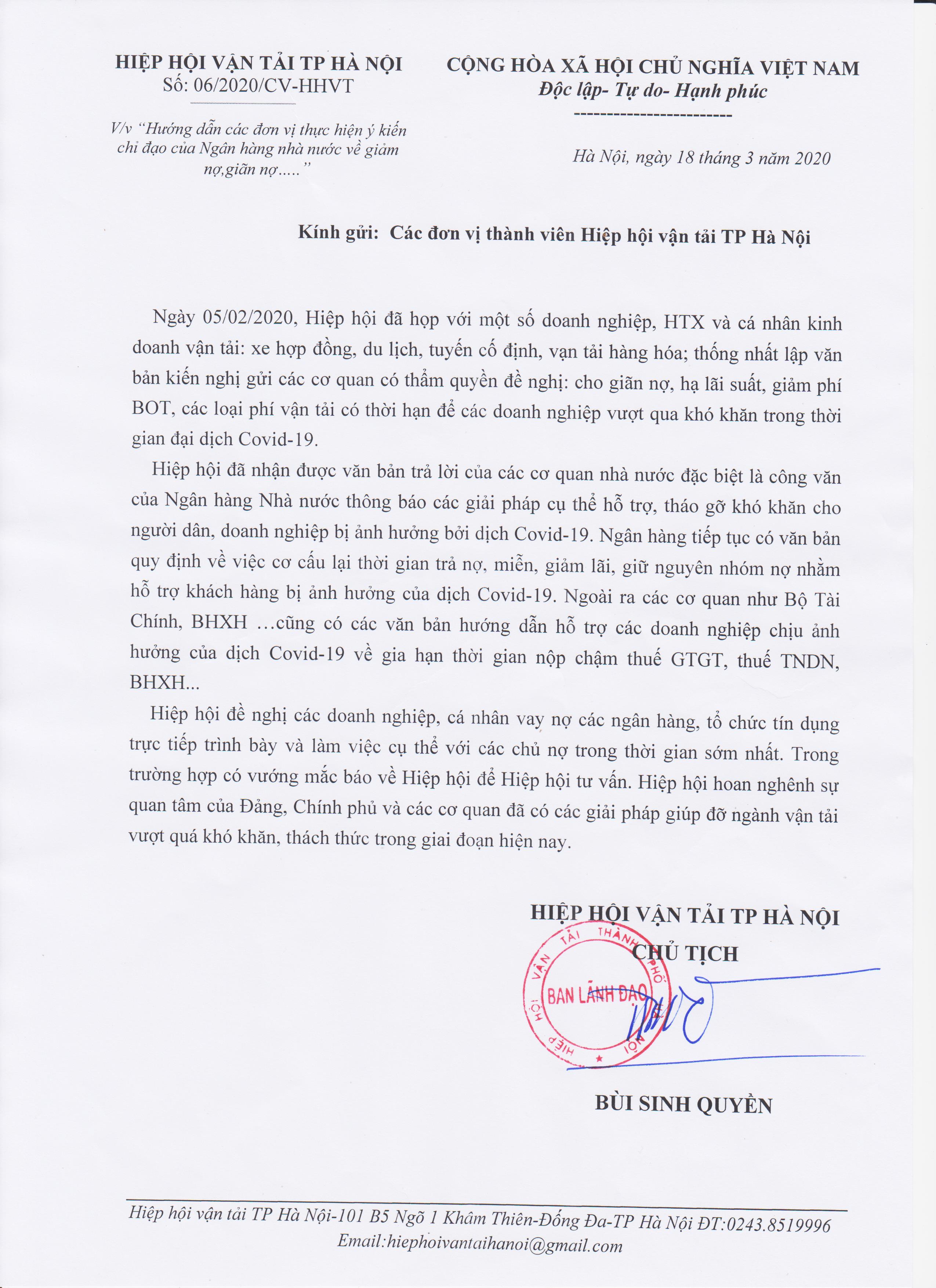 CÔNG VĂN NGÂN HÀNG NHÀ NƯỚC VIỆT NAM TRẢ LỜI HIỆP HỘI VẬN TẢI TP HÀ NỘI VỀ CÁC GIẢI PHÁP GIẢI CỨU NGÀNH VẬN TẢI ẢNH HƯỞNG BỞI DỊCH COVID-19