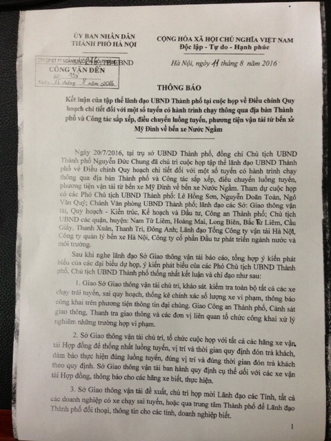 VĂN BẢN CHỈ ĐẠO CỦA UBND THÀNH PHỐ VỀ CÔNG TÁC ĐIỀU CHUYỂN LUỒNG TUYẾN
