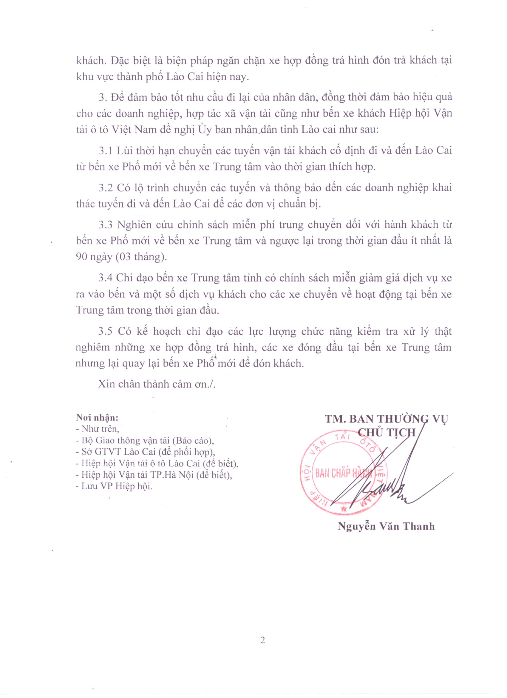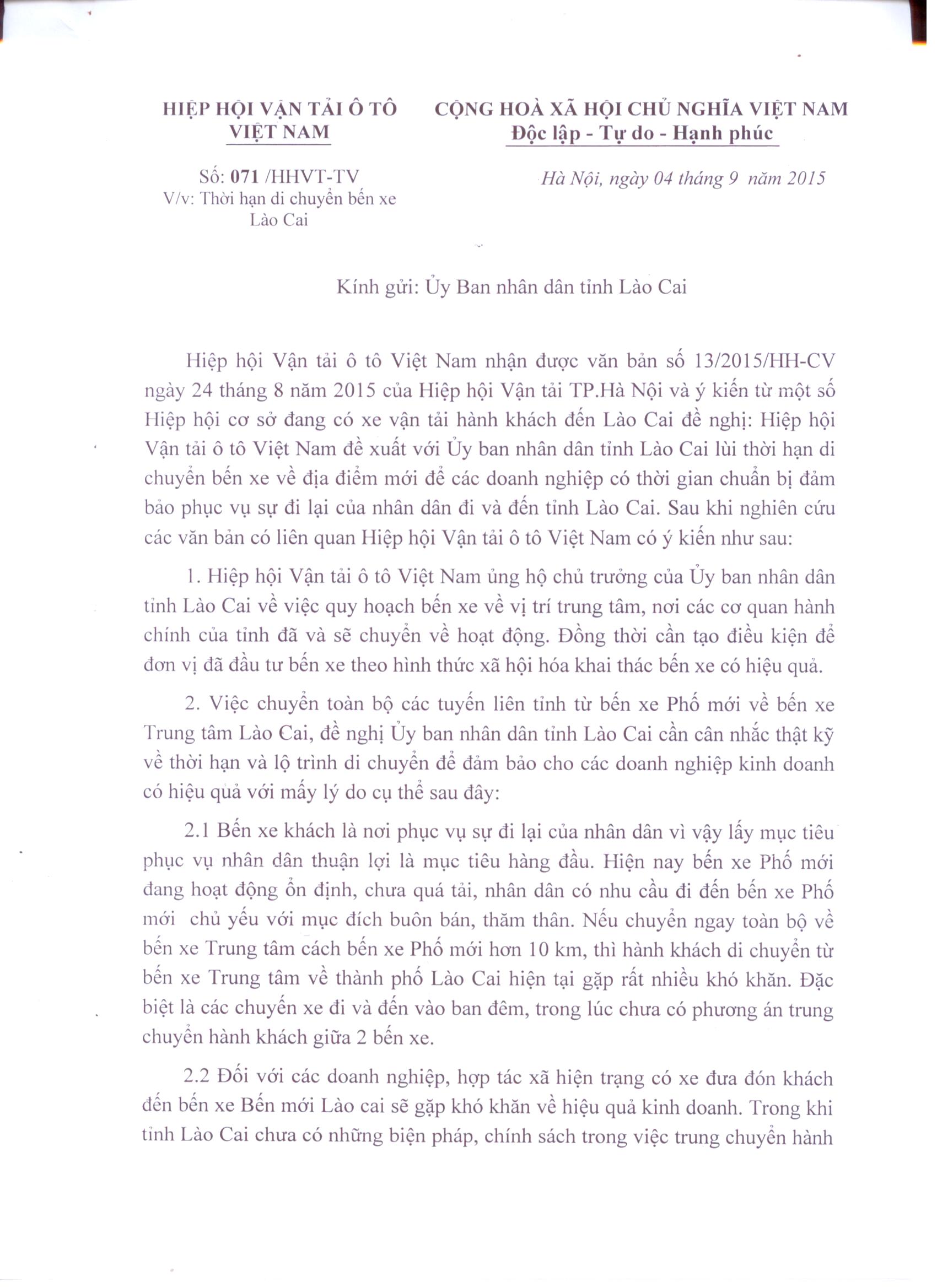 Ý KIẾN CỦA HIỆP HỘI VẬN TẢI Ô TÔ VIỆT NAM ĐỐI VỚI VIỆC DI DỜI BẼN XE LÀO CAI